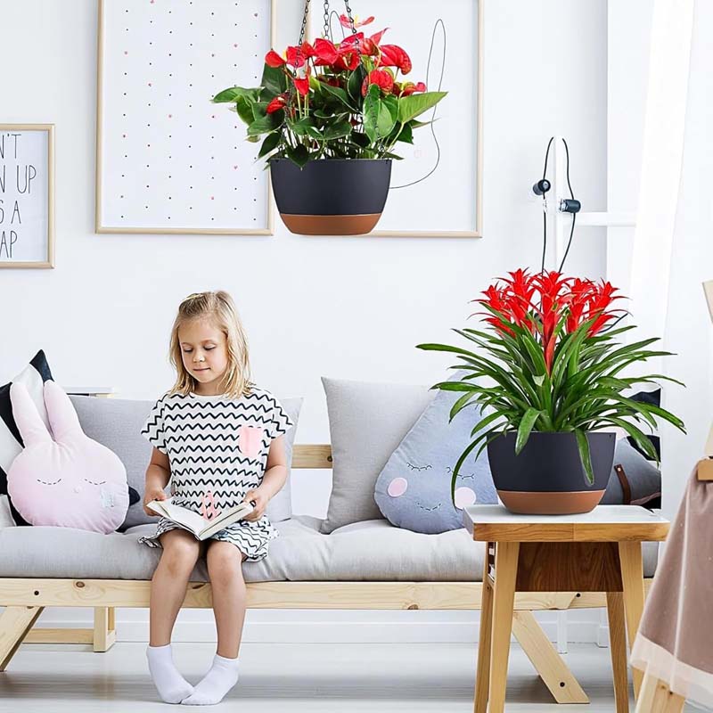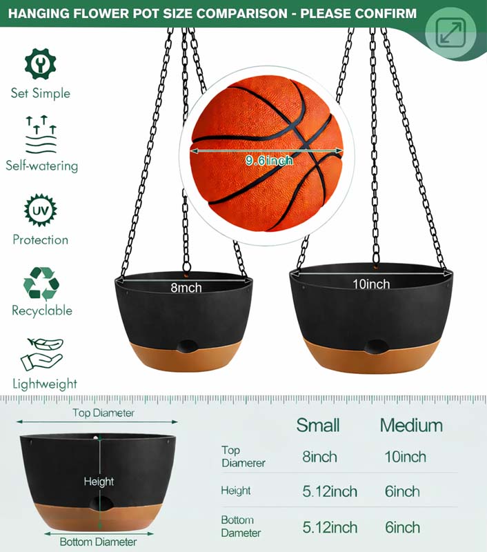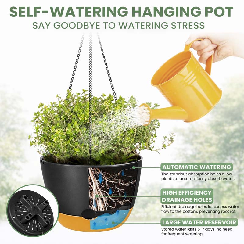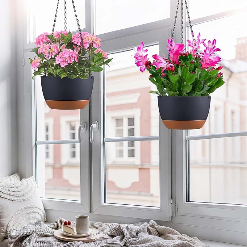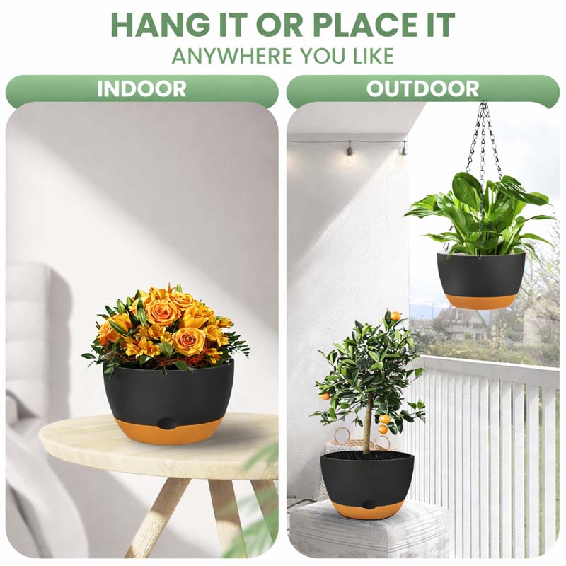 Diigabo 2-Pack 10-Inch Self-Watering Hanging Planters with Drainage Hole, Flower Pots with Chains & Hooks for Indoor Outdoor Balcony Garden Patio Décor(Black)Diigabo 2-Pack 10-Inch Self-Watering Hanging Planters with Drainage Hole, Flower Pots with Chains & Hooks for Indoor Outdoor Balcony Garden Patio Décor(Black)