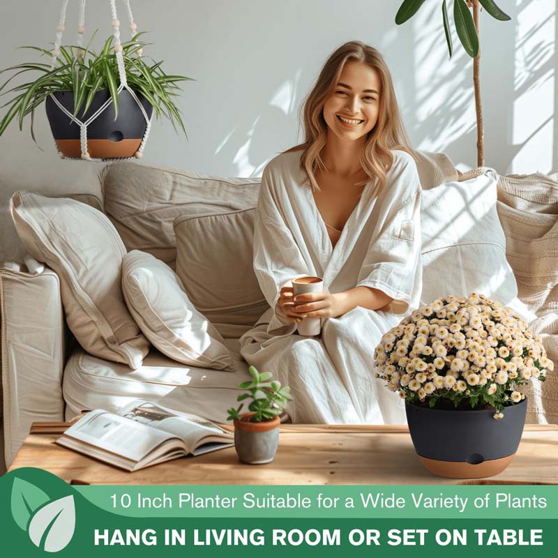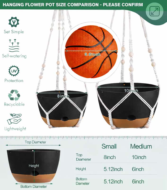 - 【Enhanced Ventilation & Smart Drainage】 Each hanging pot includes a dedicated ventilation and drainage hole between the planter and tray. This ensures excellent airflow for healthy root respiration while allowing excess water to drain properly—keeping plants safe from overwatering and promoting stronger growth.