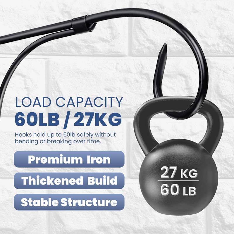 - 【STABLE & HEAVY-DUTY SUPPORT】 Designed with a clean, minimalist shape and reinforced with a high-strength welding process, each hook supports up to 60 lbs. Perfect for the heaviest pots, baskets, or décor—ideal for balconies, porches, gardens, and fences.