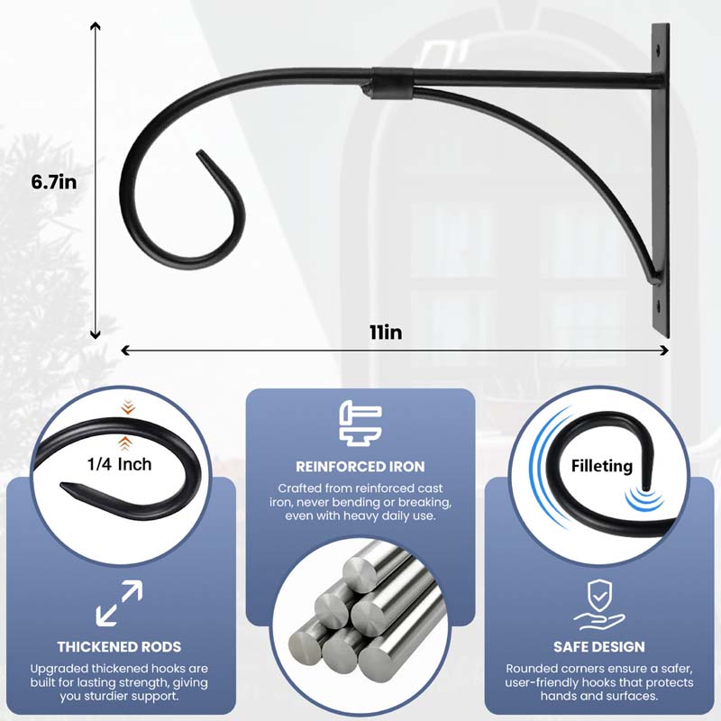 Our hanging plant brackets are decorative, sturdy, affordable, and versatile—perfect for plant baskets, bird feeders, lights, holiday décor, and more. Built to hold and support heavy baskets with ease, they help you save space and bring a touch of greenery to even the busiest urban settings.